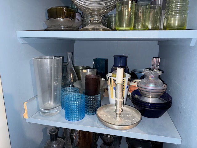 Taidelasia Mummolan vintiltä eli sekalaisia Maljakoita mm. Kaj Frank ja Okkolin alkaen 100€.